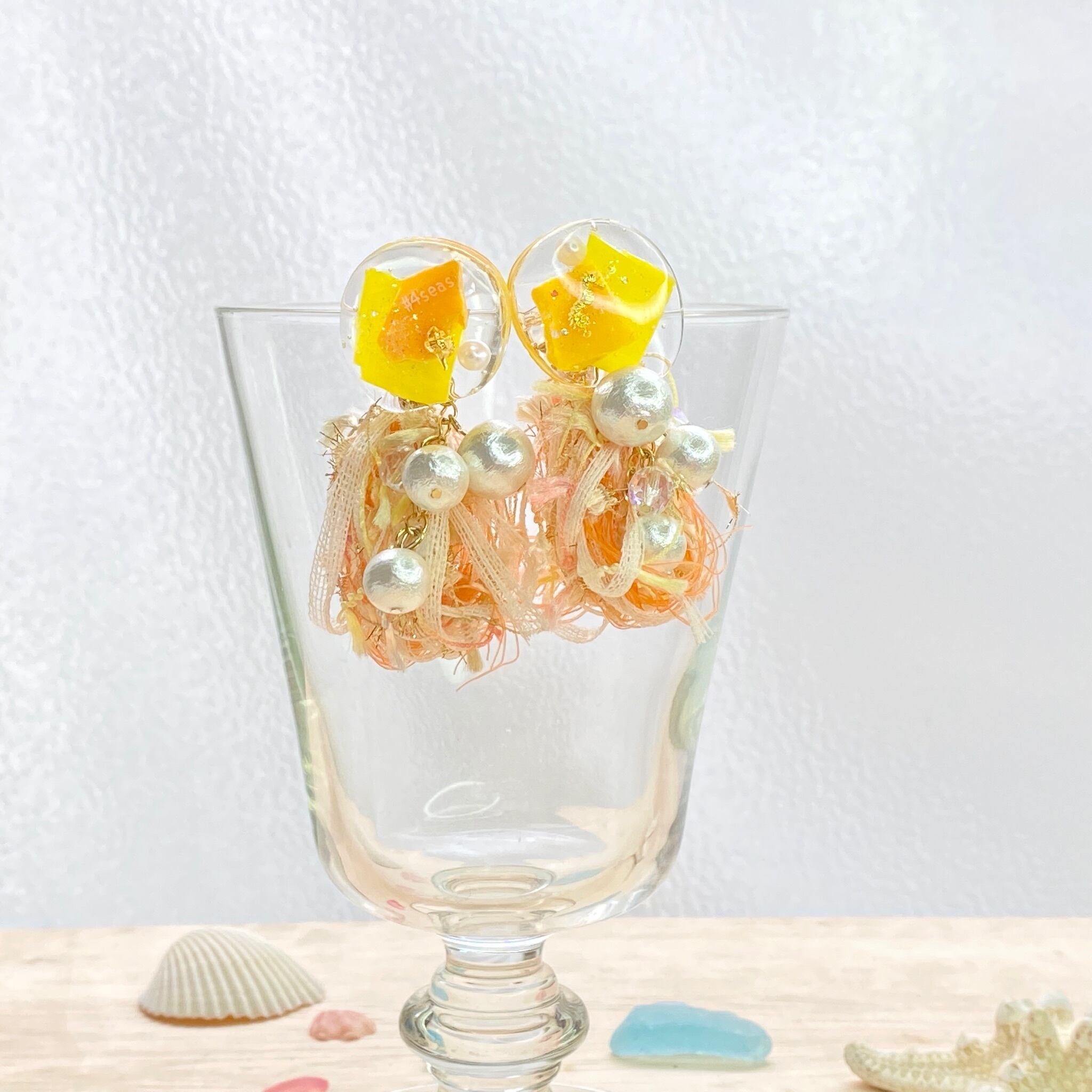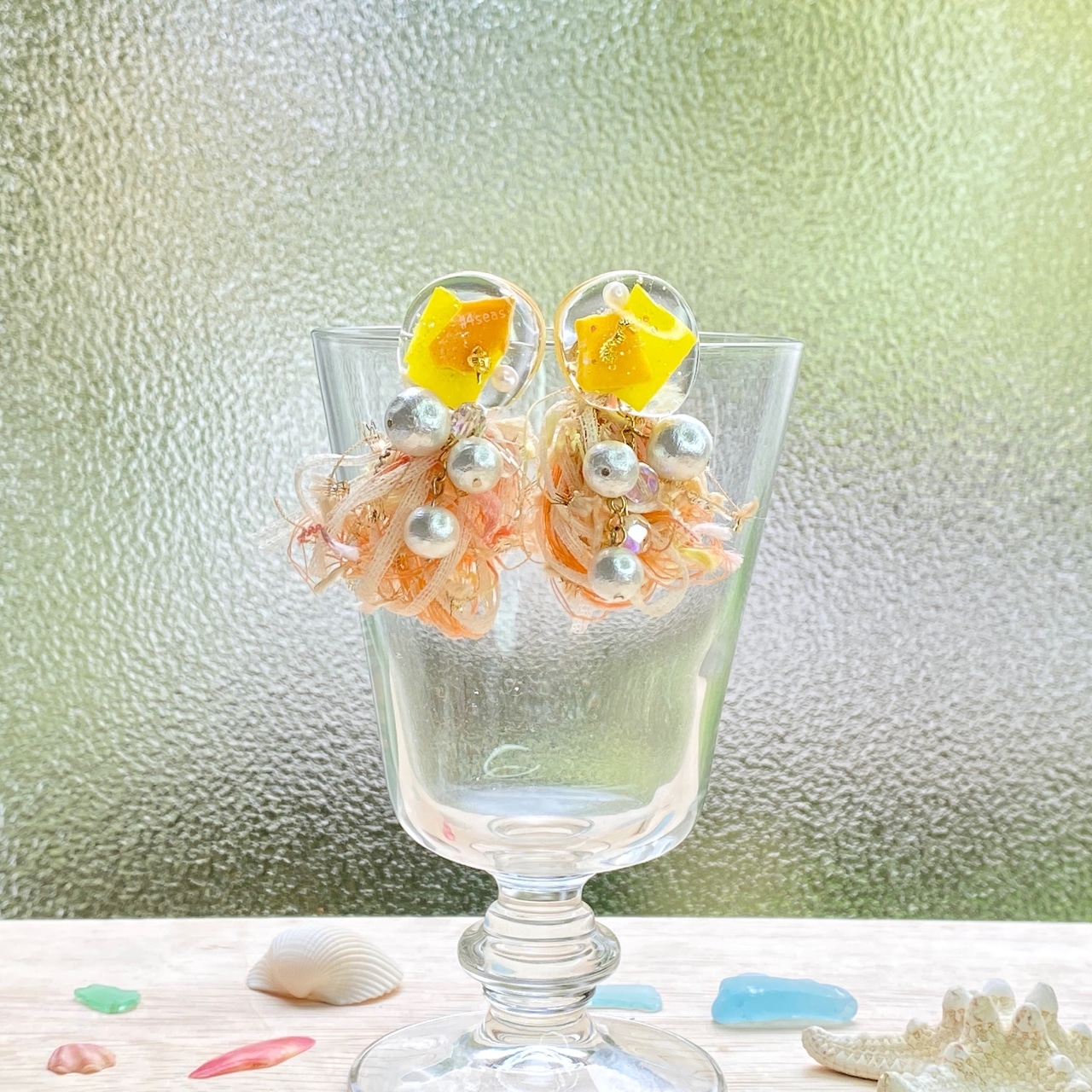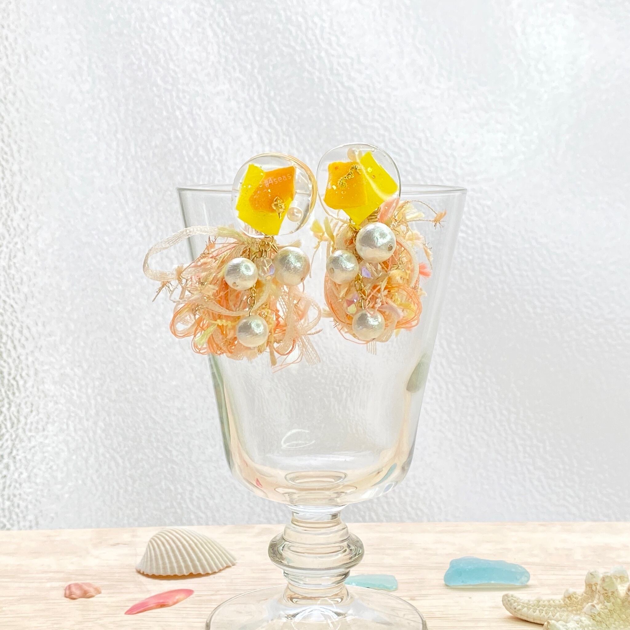 【ゆれるバブルパーツ付 umi-amiピアス/イヤリング イエロー】