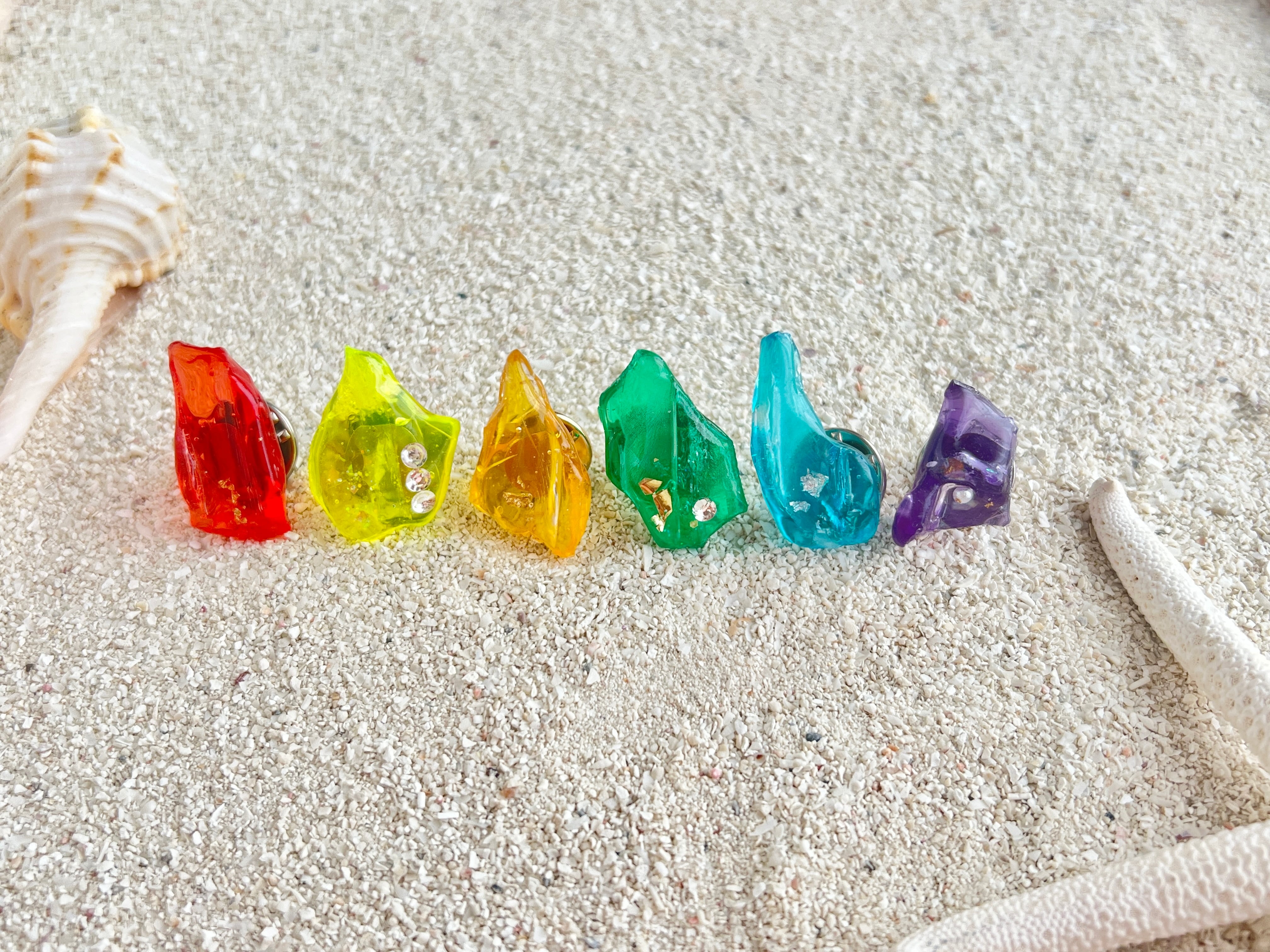○海洋ごみは海を漂う間に有害物質が付着することがあるため、しっかり洗浄をし、レジンでコーティングをしています。